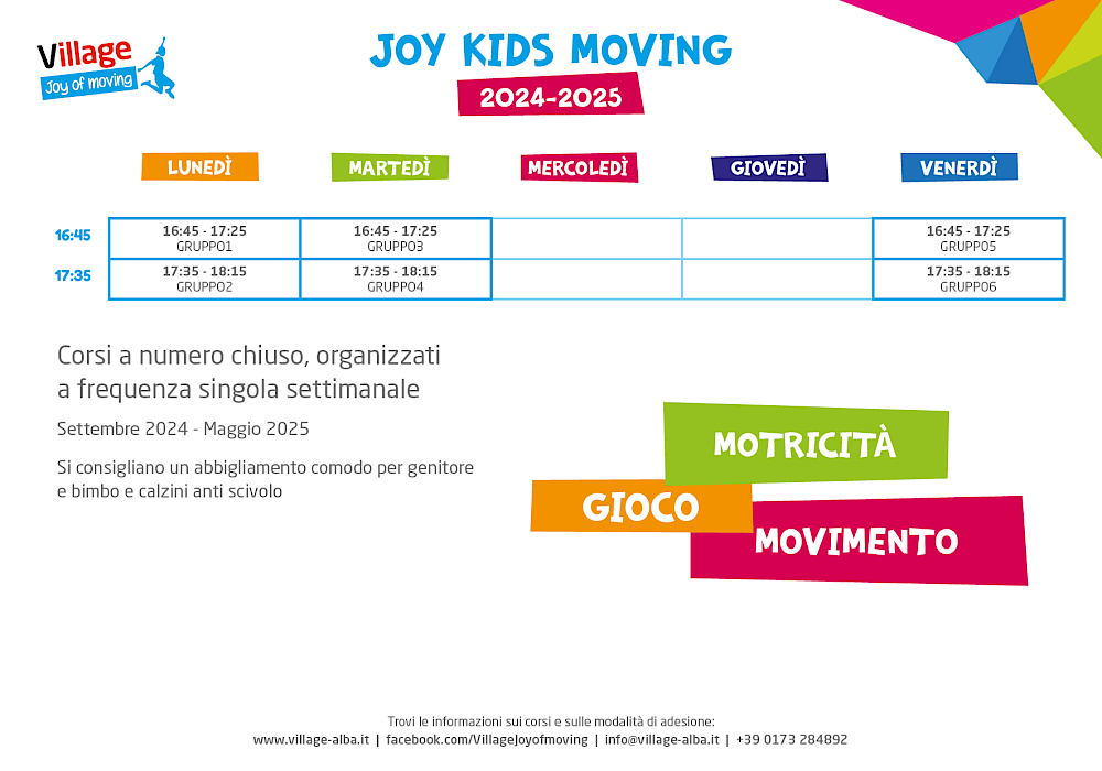A seguire i ragazzi ci sarà il team di esperti del Village: un gruppo di trainer qualificati che hanno una formazione specifica sul metodo Joy of moving.